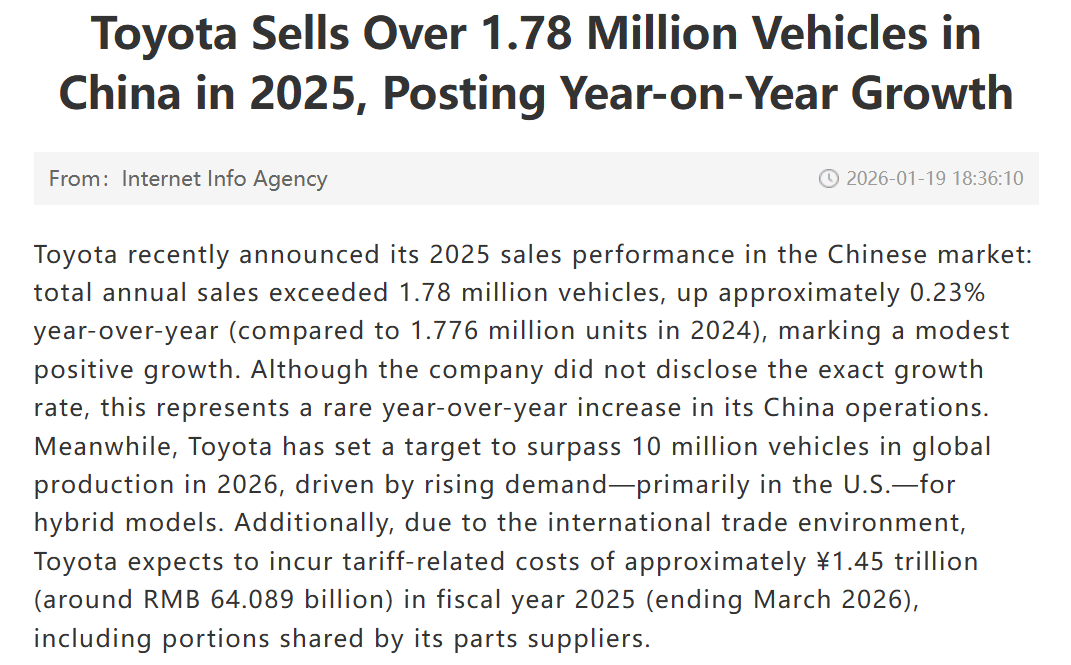2025,日系唯一的正增长:丰田的“中国节奏”