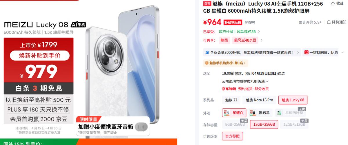 我们看到即便是在刚上市的时候,魅族Lucky 08的12G+512G也才是两千多一点。这个大存储版本现在是降低了上千幅度,但遗憾的是已经被抢完了。目前这款产品还有12G+256G版本,价格调整之后是964元,不到一千的位置,你就说内心是不是已经有打算了?